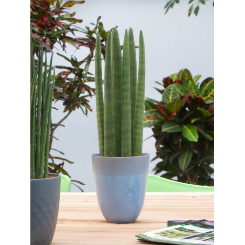 De Sansevieria is een heel bekende kamerplant en wordt ook wel “vrouwentong” genoemd. Oorspronkelijk komen deze planten uit Afrika, Madagaskar en zuid Azië. Ze staan er bekend om dat ze extreem makkelijk te verzorgen zijn: ze hebben nauwelijks water nodig en ook de standplaats zijn ze niet al te kieskeurig in. Daarnaast zuiveren ze ook nog eens de lucht! De Straight bestaat uit dikke, rechtopstaande cilindrische bladeren. Deze Sansevieria is ook een van de planten die de lucht in huis kan zuiveren! Dat betekent dat hij niet alleen CO2 omzet in zuurstof, maar dat hij ook allerlei schadelijke stoffen uit de lucht haalt. In tegenstelling tot de meeste planten, doet de Sansevieria dit voornamelijk s nachts. Perfect voor slaapkamers in woningen in de stad en voor huizen met weinig ventilatie!