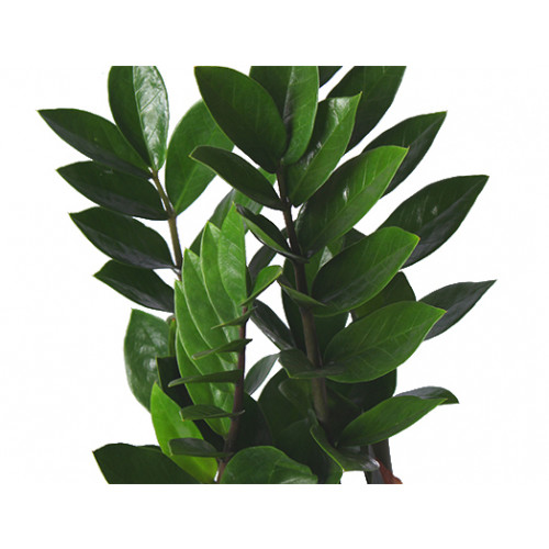 Zamioculcas is boven alles een sterk staaltje natuur. Deze groene persoonlijkheid heeft stevige, opvallend regelmatige leerachtige bladeren. Ze groeien zo aan de takken dat die een beetje op gestileerde veren lijken. Ondanks de stevige stengels valt Zamioculcas toch onder de kruidachtige planten. Zijn uithoudingsvermogen zit niet zozeer in hout en dikker of zwaarder worden, maar in zijn speciale vaten die vocht en voeding opslaan. Dat maakt het één van de makkelijkste woonplanten ooit. Licht, donker, water vergeten te geven – Zamioculcas blijft er stoïcijns onder en blijft intussen trouwhartig groen en mooi zonder zelfs maar te ruien. Als je echter meer wilt dan iets groens staat te wezen en verder vooral lijkt te dutten, doe je er goed aan toch een beetje in jullie relatie te investeren. Zamioculcas is geen vlotte groeier, maar dat maakt een nieuwe scheut een des te grotere overwinning.